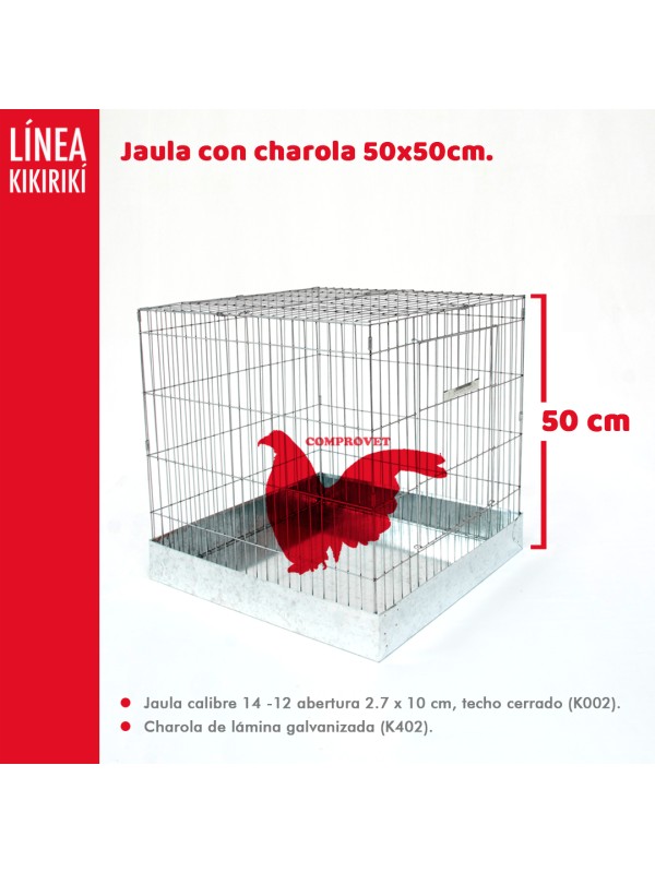 Jaula kikiriki de 50 cm, cal. 14 -12 abertura 2.7 x 10 cm, techo cerrado (50 x 50 x 50 cm.)