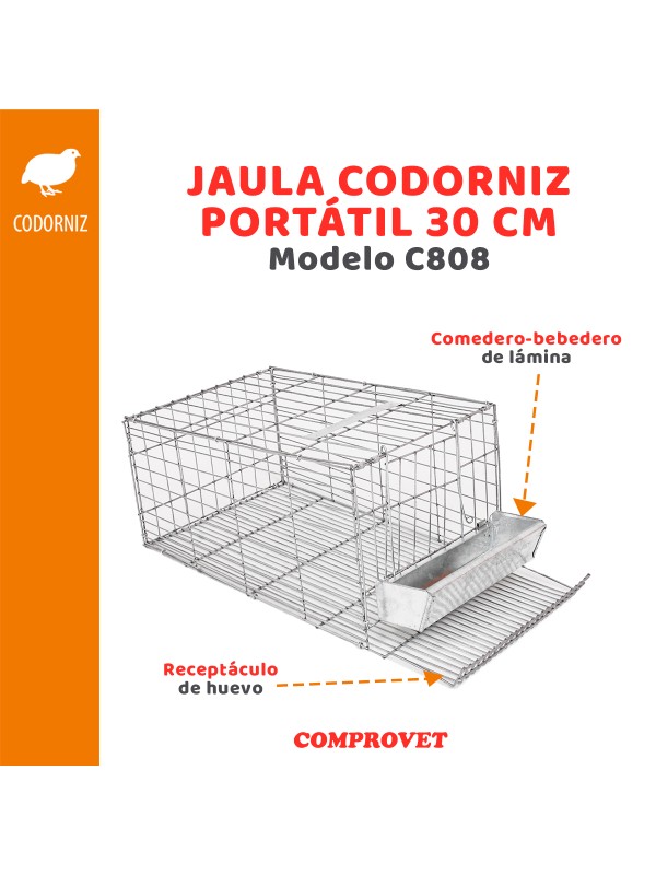 Jaula codorniz portátil 30 cm. comedero-bebedero de lámina