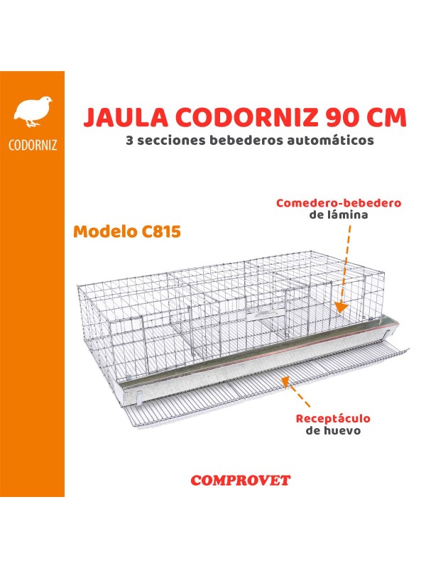 Jaula codorniz 90 cm. 3 secciones bebederos automáticos