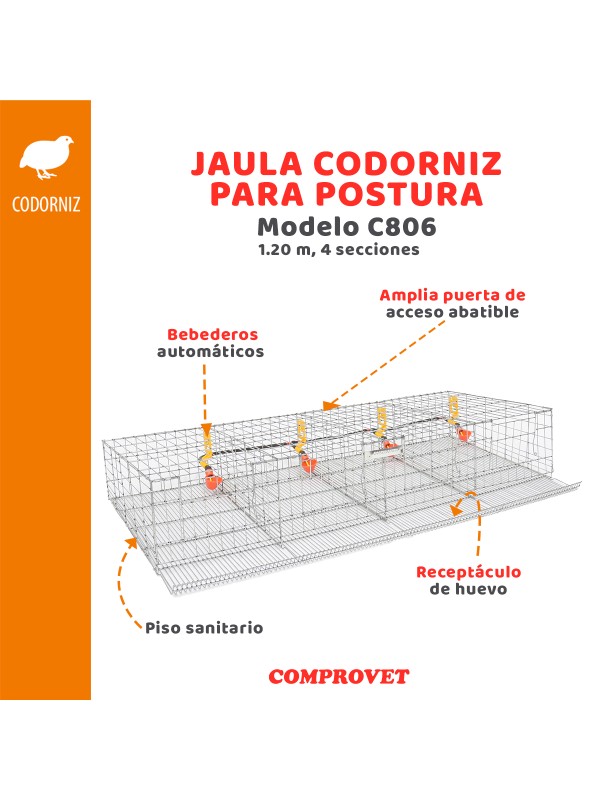 Jaula codorniz postura 1.20 m., 4 secciones, comedero-bebedero
