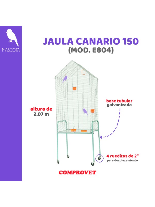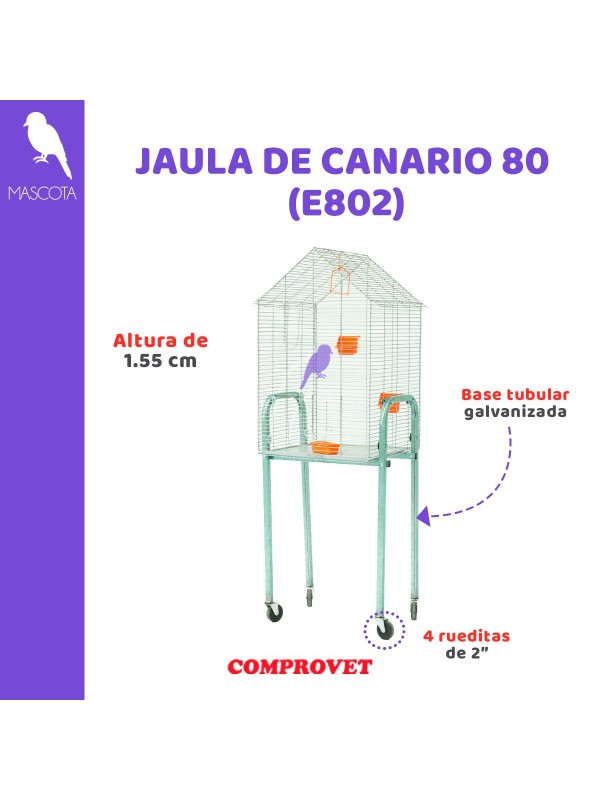 Jaula de canario 80 con base de tubular galvanizado y rueditas de 2