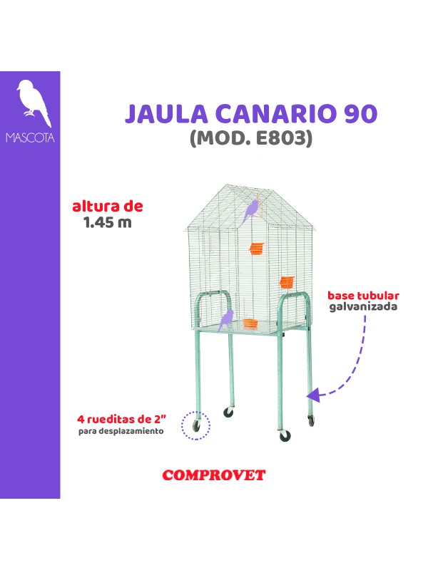 Jaula de Canario 90 con Base de Tubular Galvanizado y Ruedas