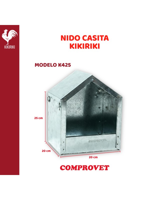 Nido Casita kikiriki interior en lámina galvanizada (20 x 20 x 25 cm.)